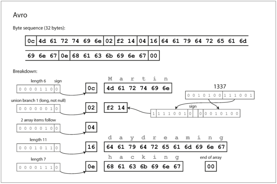 Martin Kleppmann: “Schema Evolution in Avro, Protocol Buffers and Thrift,” martin.kleppmann.com, December 5, 2012.