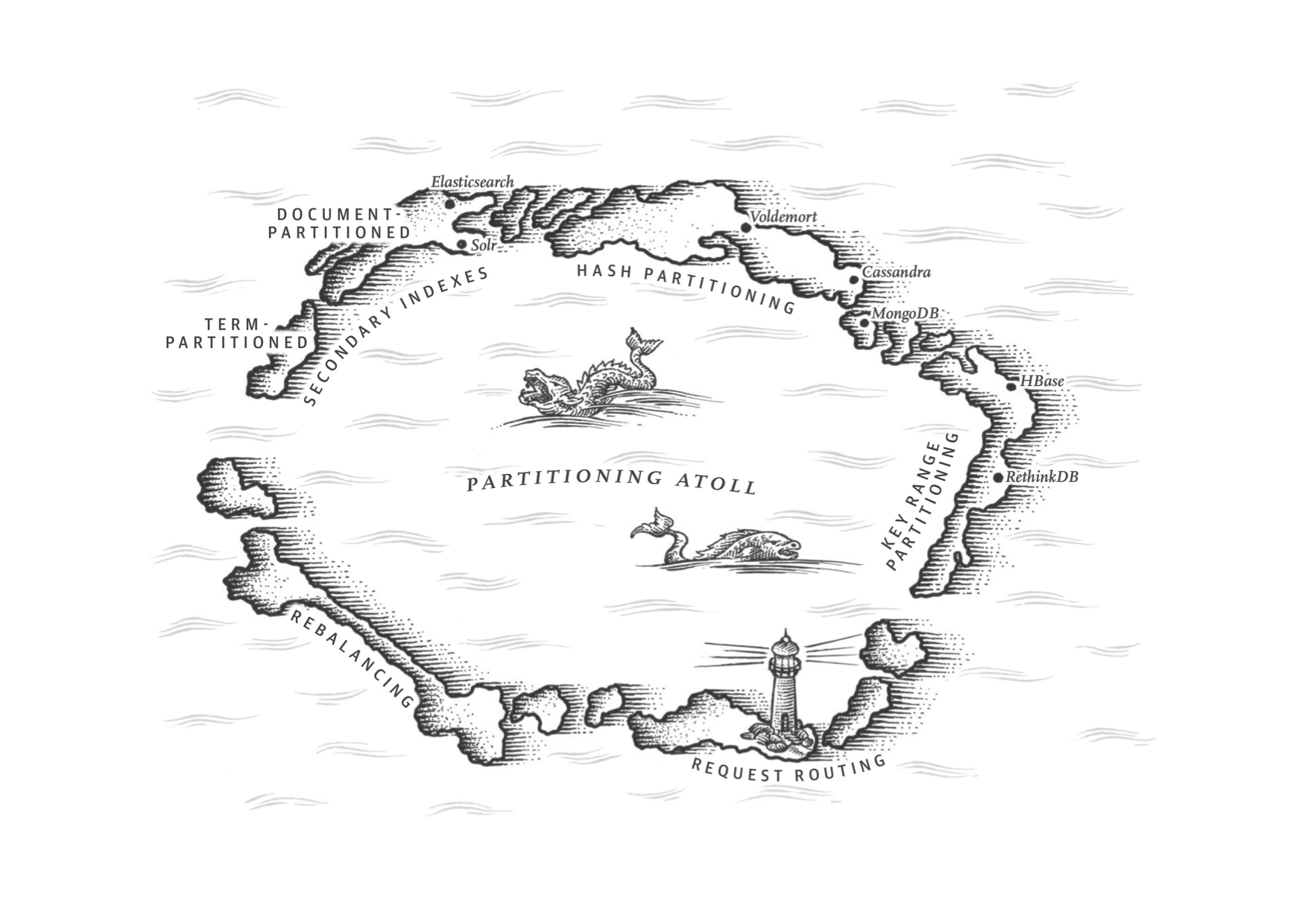 上文中的分区(partition),在MongoDB,Elasticsearch和Solr Cloud中被称为分片(shard),在HBase中称之为区域(Region),Bigtable中则是 表块(tablet),Cassandra和Riak中是虚节点(vnode),Couchbase中叫做虚桶(vBucket)。但是分区(partition) 是约定俗成的叫法。