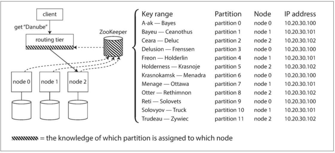 以上所有情况中的关键问题是:作出路由决策的组件(可能是节点之一,还是路由层或客户端)如何了解分区-节点之间的分配关系变化?